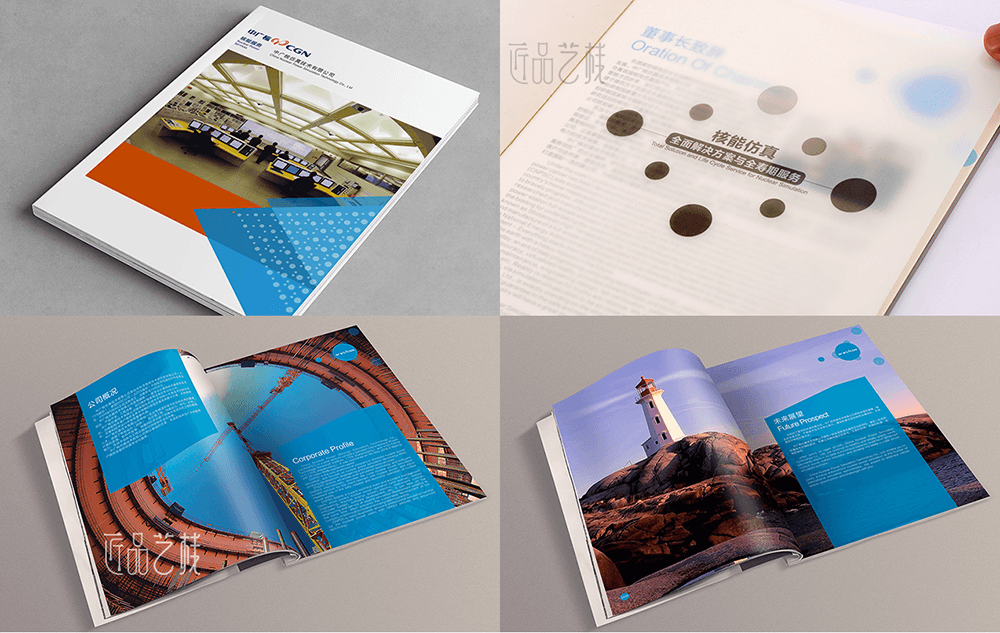 畫(huà)冊(cè)設(shè)計(jì)中的統(tǒng)一性策略,不能單純理解為版式統(tǒng)一性。而更多指統(tǒng)一的風(fēng)格或創(chuàng)意元素,把整本畫(huà)冊(cè)貫穿起來(lái),形成整本畫(huà)冊(cè)的統(tǒng)一形象。如在中廣核的企業(yè)畫(huà)冊(cè)設(shè)計(jì)中,我們采用其核裂變的品牌元素,以靈活的組合設(shè)計(jì)方式,不僅有效提升畫(huà)冊(cè)的視覺(jué)形象和統(tǒng)一性,更能有效傳播其品牌經(jīng)營(yíng)理念。