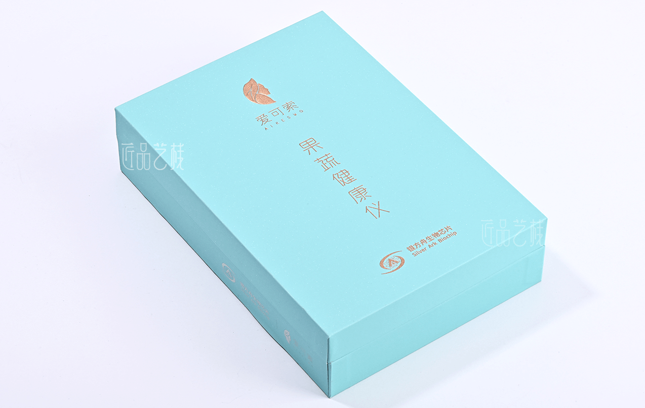 如:與愛可索(果蔬健康檢測儀品牌)從設(shè)計到印刷整體完成的生物芯片產(chǎn)品包裝盒案例: