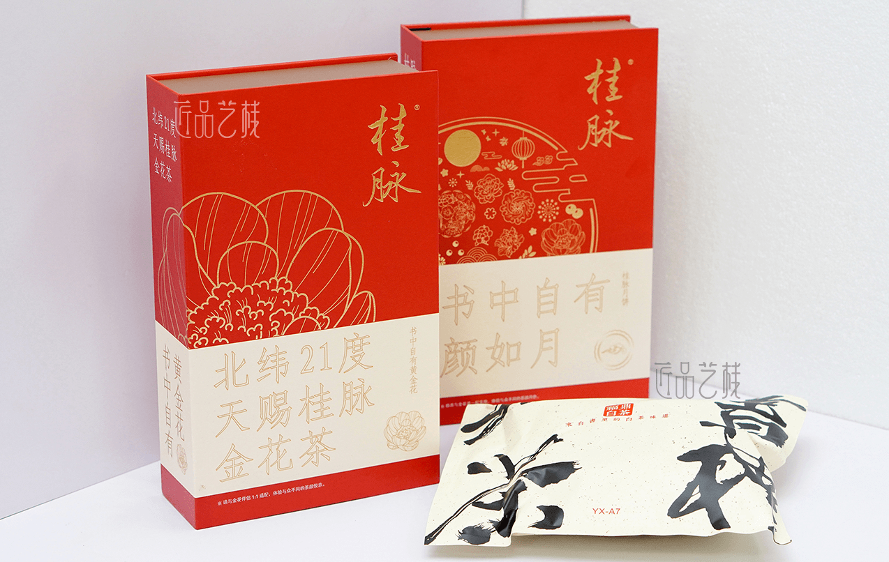 如:與桂脈金花茶(秋葉大叔直播間力推品牌)從設(shè)計到印刷整體完成的健康茶飲產(chǎn)品包裝盒案例: