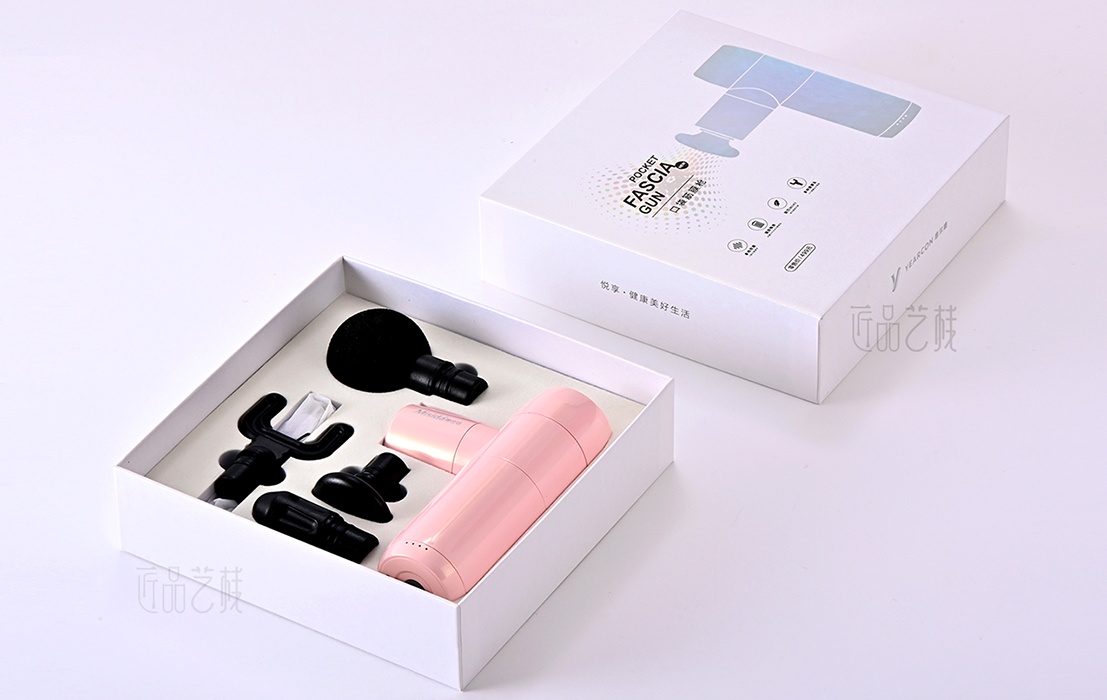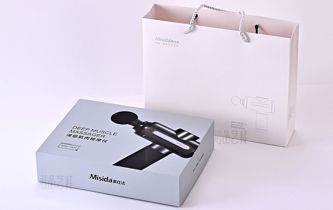 在美仕達(dá)口袋按摩槍的包裝盒制作上,