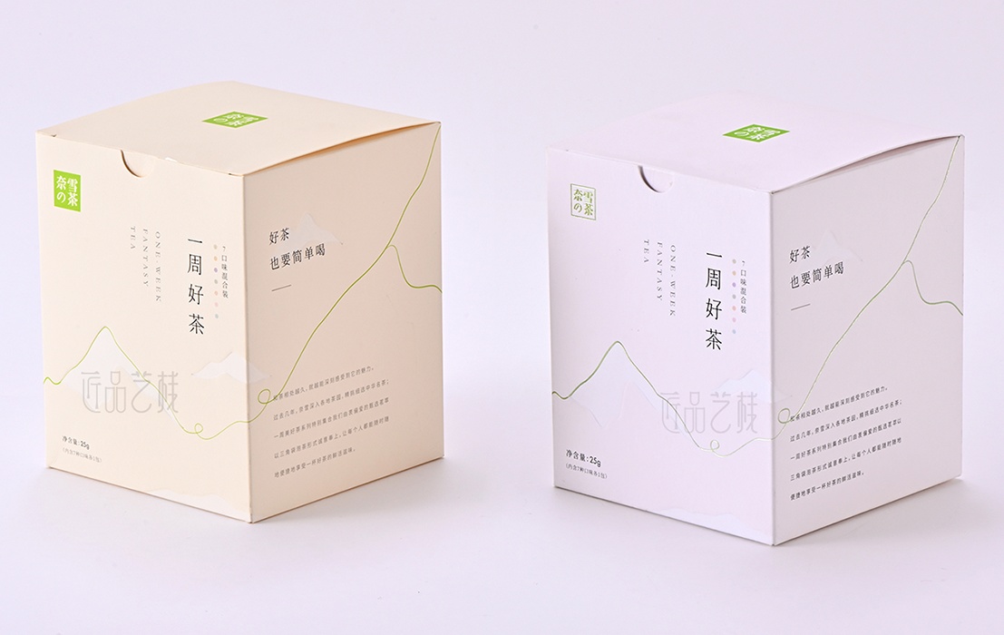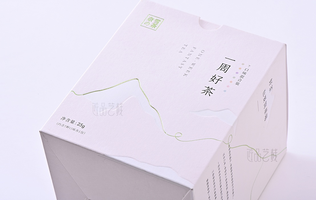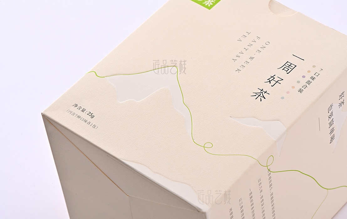 在一周好茶的包裝上,我們采用新穎、時尚的特種紙,