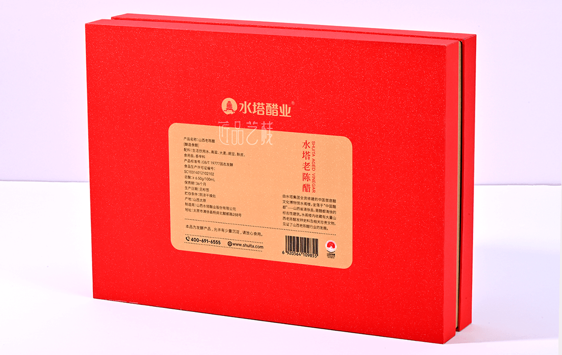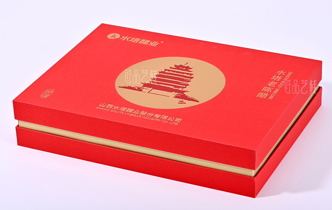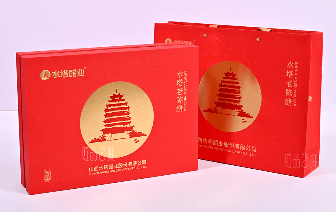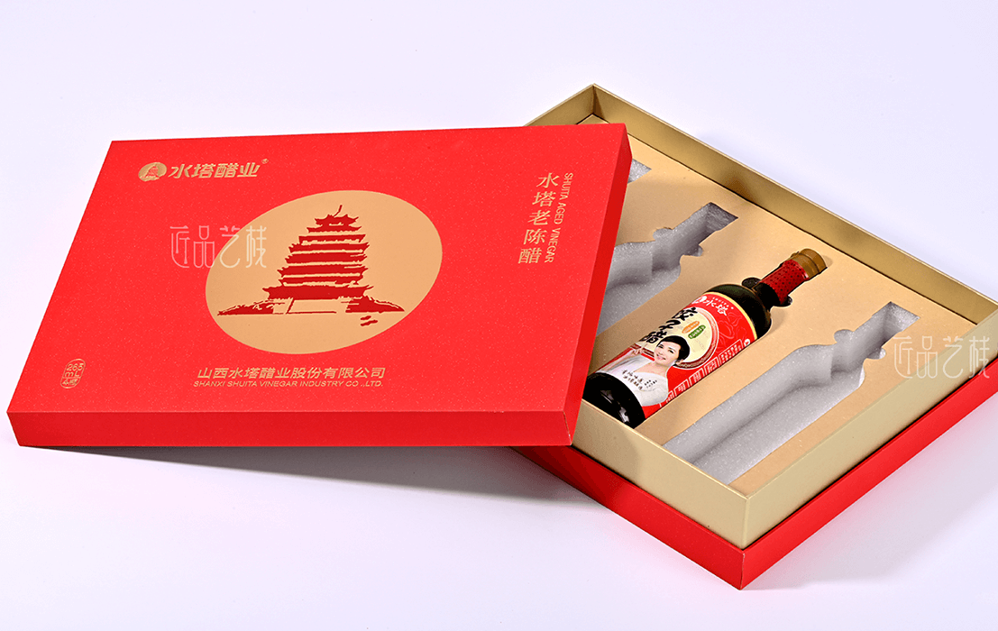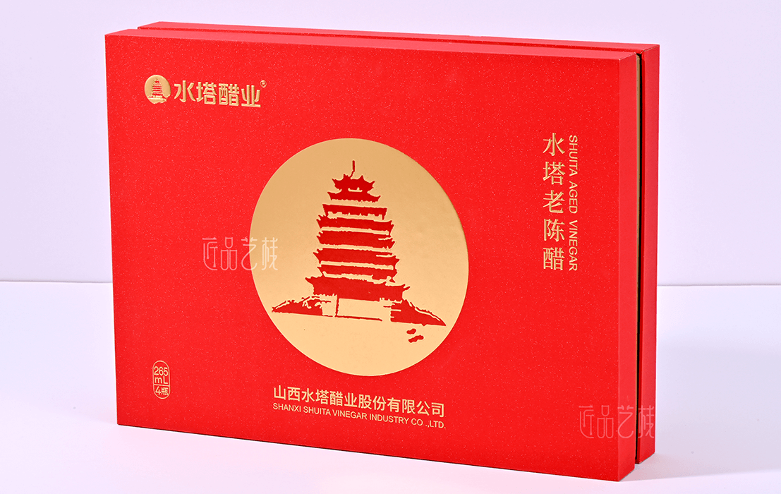在攜手水塔醋業(yè)禮盒包裝定制中,采用天地蓋禮盒套裝結(jié)構(gòu),